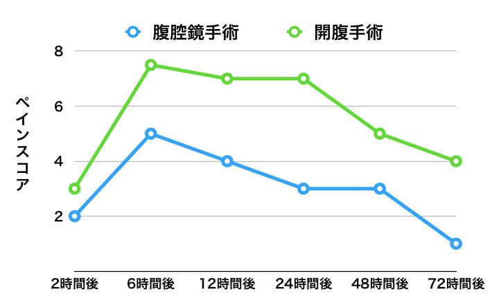 いくつかの報告では一般的な不妊化手術と内視鏡(腹腔鏡)手術を比べた結果、手術後の痛みが軽減したとされています。これはペインスコア(痛みの表現をスコアリングしたもの)で示され、いくつかの研究機関に渡って報告されています。
