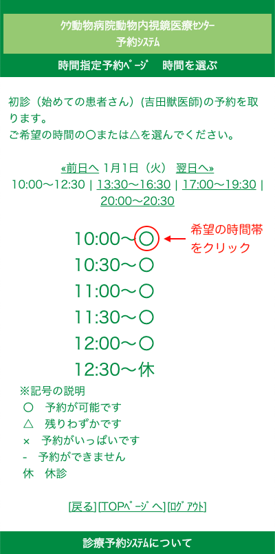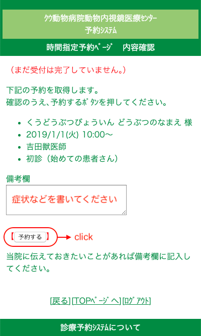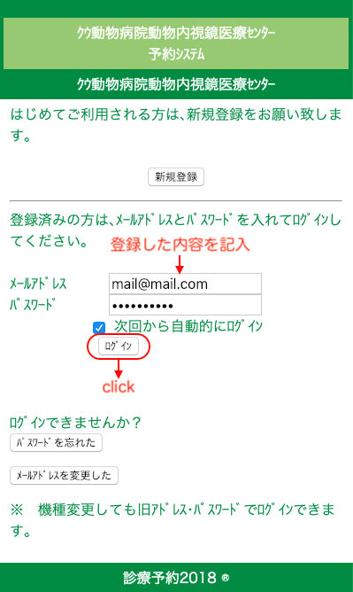 予約サイトへアクセスし、登録したメールアドレス、パスワードを記入してログインしてください。