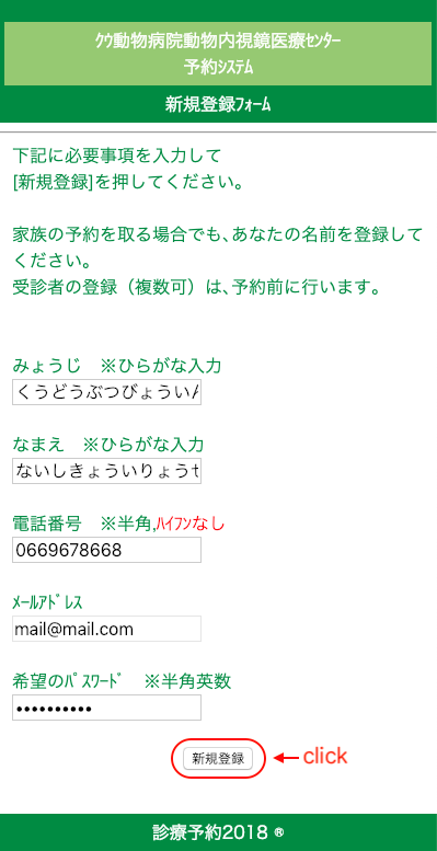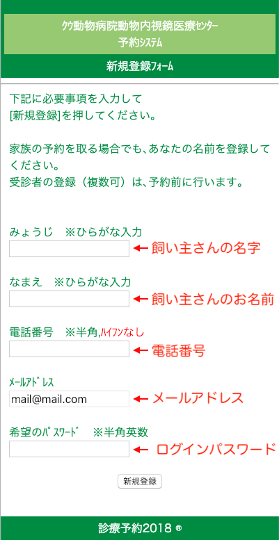 登録フォームの記入